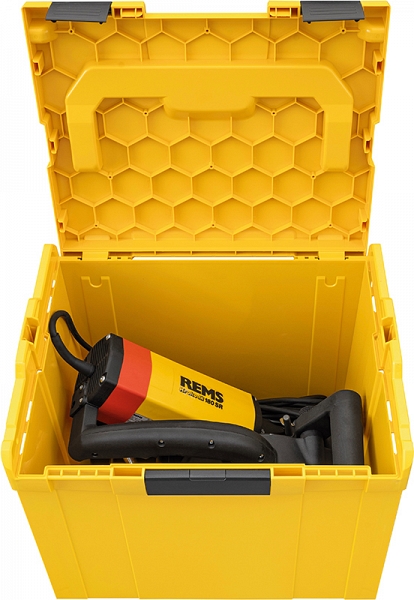- Rems Krokodil 180 SR Basic-Pack L-Boxx H. Электрическая просечная и разрезная машина с алмазным диском и системой регулирования скорости. Для просечки и резки, например, бетона, железобетона, кирпичной кладки любого вида, природного камня, бесшовного пола любого вида. Глубина штробы ≤ 61 мм, плавная регулировка. Ширина штробы ≤ 62 мм, изменяется с помощью прокладок 3, 6, 10, 20 мм. Привод с приводным валом Ø 22,2 мм, для 1, 2 или 3 алмазных дисков по EN 13236, ≤ Ø 180 мм, редуктором не требующим обслуживания, универсальным двигателем 230 В, 50 / 60 Гц, 2000 Вт. Многофункциональный блок электроники с плавным пуском, ограничением скорости вращения на холостом ходу, предохранителем от перегрузки, защитой от блокировки. Соединительный провод 5,7 м. Защита от непреднамеренного запуска при отказе сетевого питания. Предохранительный выключатель импульсного режима с блокировкой повторного включения. Скорость вращения под нагрузкой 3300 об/мин. Патрубок для подключения к пылесосу / пылеотводу. Гаечный ключ SW 13. В кофровой системе L-Boxx H.