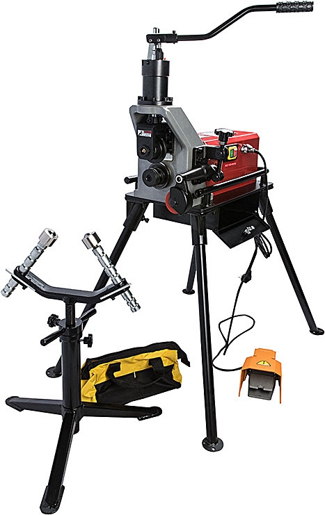 - Регулируемый прижимной валик для стабилизации положения трубы при накатке