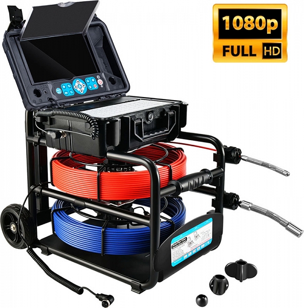 Проталкиваемая система видеоинспекции канализационных труб Rotorica 3499F-Dual-30 (Роторика 3499Ф-Дуал-30) с камерами CMOS, Ø 18 × 135 мм, широким углом обзора 82° и Ø 23 × 155 мм, широким углом обзора 120°, разрешением формата Full HD 1080P AHD (1920 × 1080), записью видео и аудио, встроенными счетчиками расстояния и катушками с кабелями Ø 4,8 мм × 30 м и Ø 5,2 мм × 30 м предназначена для осмотра внутренних трубопроводов, канализации и сливов, а также для инспекции каналов, дымоходов, воздуховодов в производствах и домах.